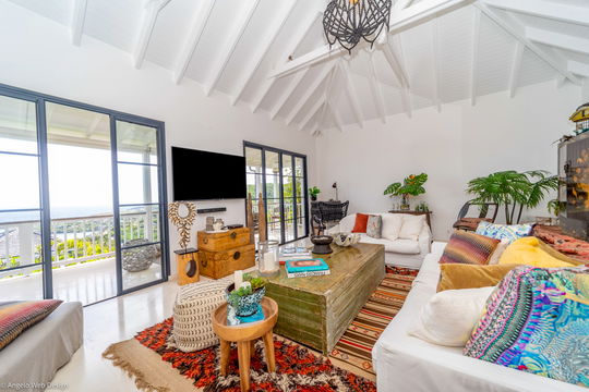 Located on the heights of Marigot, the vacation rental AMALIE is a property built over three levels in front of a magnificent view over the ocean and the rolling hills of St-Barths. Spacious and luxurious, this vacation home consists of two bedrooms, a swimming pool and a jacuzzi in a fantastic environment where the lovely decoration softly mixes with high quality materials.