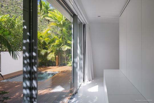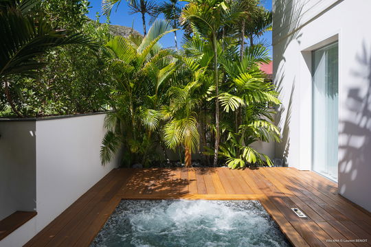 The villa rental ANA FLAMANDS consists of five air-conditioned bedrooms, each with a queen-size bed, television, and en-suite bathroom, two of which with additional bathtubs. They are spread across a separate building, with three upstairs, including two with private terraces and spectacular bay views; a smaller third bedroom is perfectly suited for teenagers. The other two bedrooms are located on the ground floor, each with a terrace and garden views. A private small pool provides an extra touch of elegance and tranquility to one of the terraces, creating a haven of serenity. A fully equipped fitness room is also available on the main level.