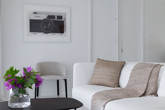 Designed across multiple levels, villa ANA FLAMANDS was built on a contemporary architecture embracing natural light, seamlessly blending the island’s beauty with utmost luxury. Located on the famous Flamands Beach, this extraordinary vacation rental welcomes you to its stylish living area, where striking white sofas reflect the luminous glow of St-Barths through sheer curtains over the wide bay windows. The dining room offers an intimate setting for private dinners, close to the fully equipped kitchen ideal for a private chef. And for evening cocktails and gatherings, a beautifully designed bar welcomes guests, facing the terrace with its captivating ocean views.