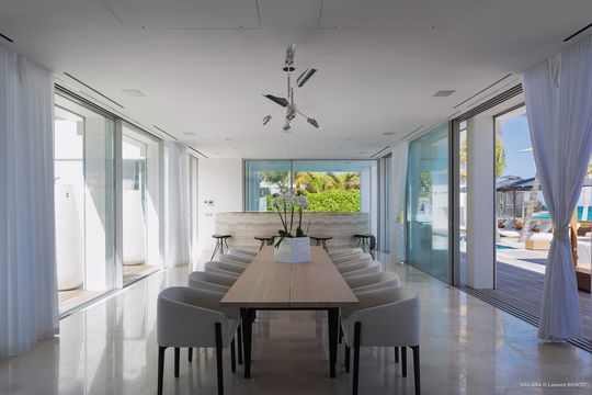 Villa ANA FLAMANDS is a stunning property set on the white sand of Flamands Beach. With five bedrooms, this outstanding villa rental opens onto a breathtaking view over crystal-clear waters, framed by a magnificent swimming pool. With wide indoor spaces and luxurious amenities, ANA FLAMANDS welcomes up to ten guests in a most refined scenery, for an unforgettable stay in St-Barths.