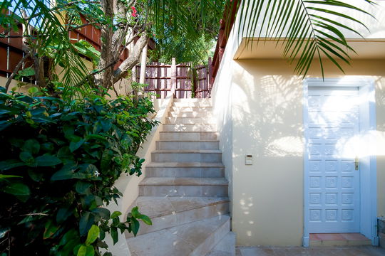 Villa CALYPSO is a charming Caribbean-style property ideally located in a quiet area of Anse des Cayes. It offers a splendid view over the ocean and the surrounding hills in a lush green environment. Close to all amenities, this two-bedroom vacation home is the perfect place for a romantic getaway in St Barths.