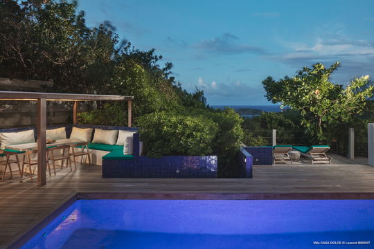 The villa rental CASA DOLCE is a charming Caribbean property located in Pointe Milou, surrounded by lush tropical vegetation. Overlooking a partial ocean view, this four-bedroom property offers bright and comfy living spaces perfect for a dream vacation with family or friends. With its delightful pool, intimate terraces, and high-quality amenities, CASA DOLCE promises an unforgettable stay in St-Barts.