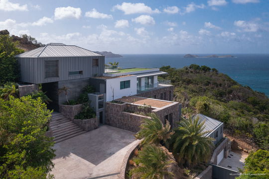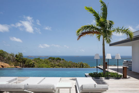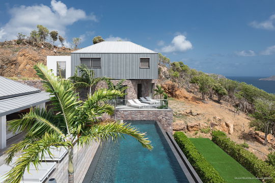 Located in Lorient on a hillside, the luxurious villa FELICITA is a superb contemporary property with an outstanding ocean view in the heart of lush tropical vegetation. With upscale amenities, this seven-bedroom home is the privileged and exclusive place for an exceptional stay in St. Barts.