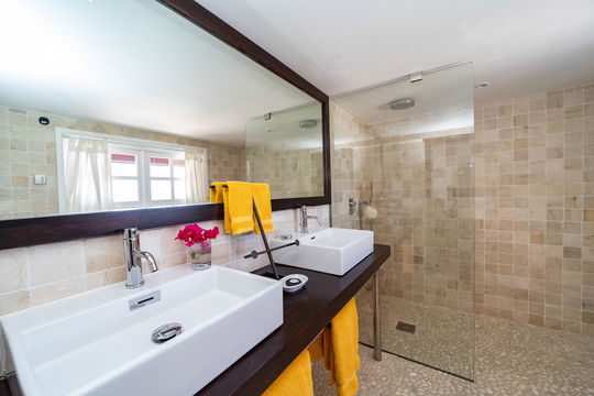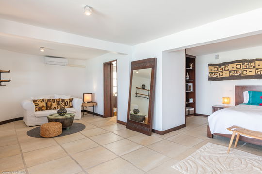Consisting of five air-conditioned rooms, the rental villa in St. Barths NALA welcomes large groups and families. All rooms feature king size beds and en-suite bathrooms. They are very spacious and come with sitting areas or access to the villa's terraces. In a refined and warm décor, the five bedrooms are a true haven of peace that you’ll enjoy every evening after days exploring Saint-Bart’s.