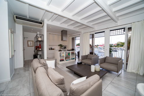 SUITE HARBOUR is a beautiful three-bedroom duplex apartment located in the heart of Gustavia, facing the harbor and the docks. Central and close to all amenities, it is only a few steps from restaurants and shops.