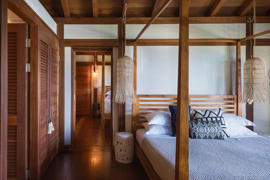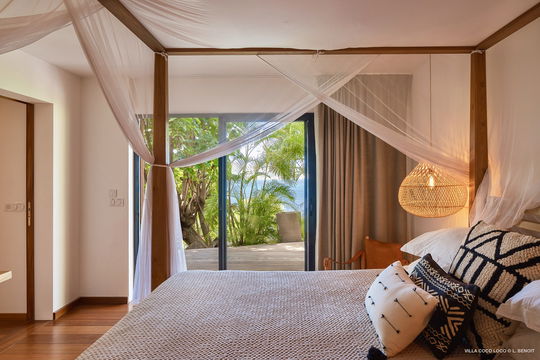 Construite sur deux niveaux, la maison de vacances de luxe COCO LOCO accueille une grande famille ou des amis partant en vacances ensemble dans ses quatre chambres tout confort avec vue sur l’océan ou sur l’environnement tropical. Toutes sont meublées de lits king size à baldaquin, de dressings et sont dotées de salles de bains attenantes, dont une avec douche extérieure. Deux d’entre elles sont communicantes, aménagement parfait pour accueillir des familles avec de jeunes enfants. Deux chambres sont situées au niveau principal proche de l’espace de vie, tandis que les deux autres suites sont à l’étage inférieur, pour une plus grande intimité.