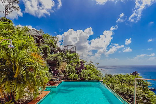 La charmante villa de location L'ENCLOS est située à Colombier, à quelques minutes des plages et des commerces. Le panorama sur les couchers de soleil depuis la terrasse est juste sublime, face au spectacle incandescent et sans cesse renouvelé. Avec sa magnifique vue panoramique  sur l’océan et ses deux chambres, c’est le lieu idéal pour un séjour en famille avec des enfants ou pour deux couples voyageant ensemble. Récemment rénovée, la villa de vacances L’ENCLOS à St-Barths a été dessinée dans un style architectural typique de l'île. Perchée à flanc de colline, dans un domaine très privé, la propriété s’étend sur trois bungalows indépendants offrant des vues spectaculaires de toutes les pièces.
