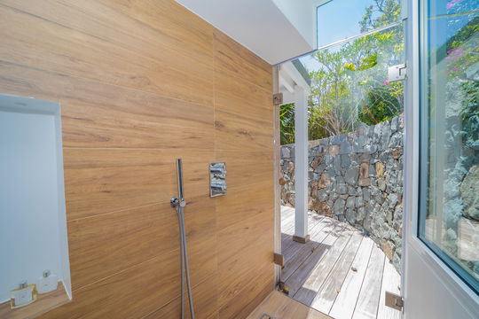 Construite sur deux niveaux, la villa de location LENALEE accueille ses hôtes dans l’élégance raffinée d’une architecture contemporaine. Entièrement ouverte sur l’extérieur, LENALEE offre de superbes vues sur l’océan et la végétation luxuriante des Caraïbes. Le salon climatisé se pare de teintes lumineuses autour d’un canapé et d’un téléviseur à écran plat face à une grande baie vitrée donnant sur la terrasse. La salle à manger intérieure pour huit invités jouxte la cuisine bien équipée dotée d’un bar à petit déjeuner. Les tableaux qui ornent les murs apportent une touche colorée et chatoyante à cet intérieur très cosy où vous apprécierez de vous détendre dans le luxe absolu d’une décoration inspirée.